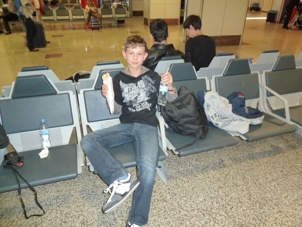 In Madrid am Flughafen haben wir dann ein großes Baguette und 2 Flaschen Wasser hinuntergeschlungen. Eigentlich hat Leon alles alleine gegessen …