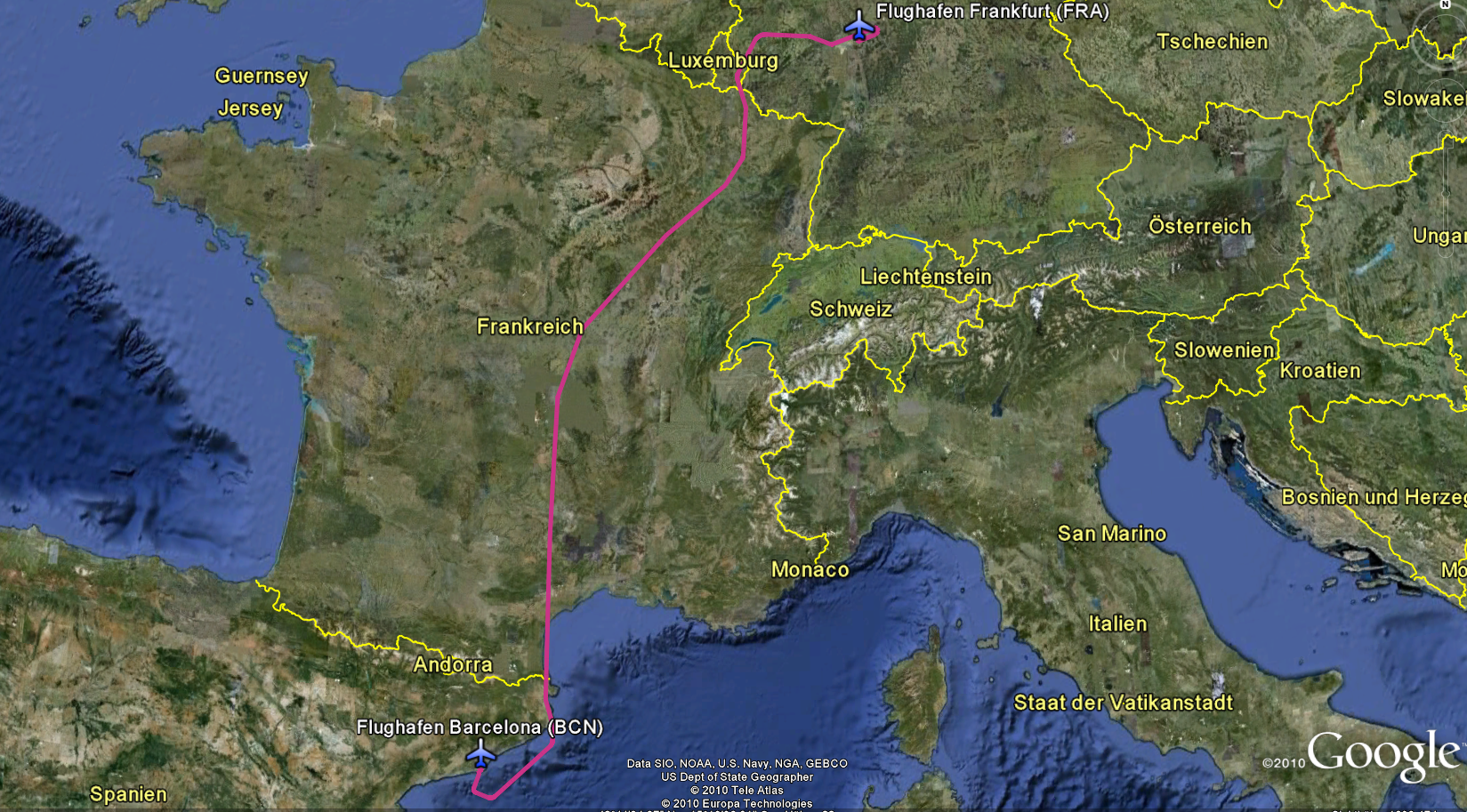 Der Weiterflug nach Barcelona war wieder mit Spanair. Also ohne Verpflegung. Auch diese Stunde Flug, verging ziemlich schnell. Der Pilot hat sich eine glatte 1 verdient. So eine zuckerweiche Landung habe ich noch nie erlebt.
